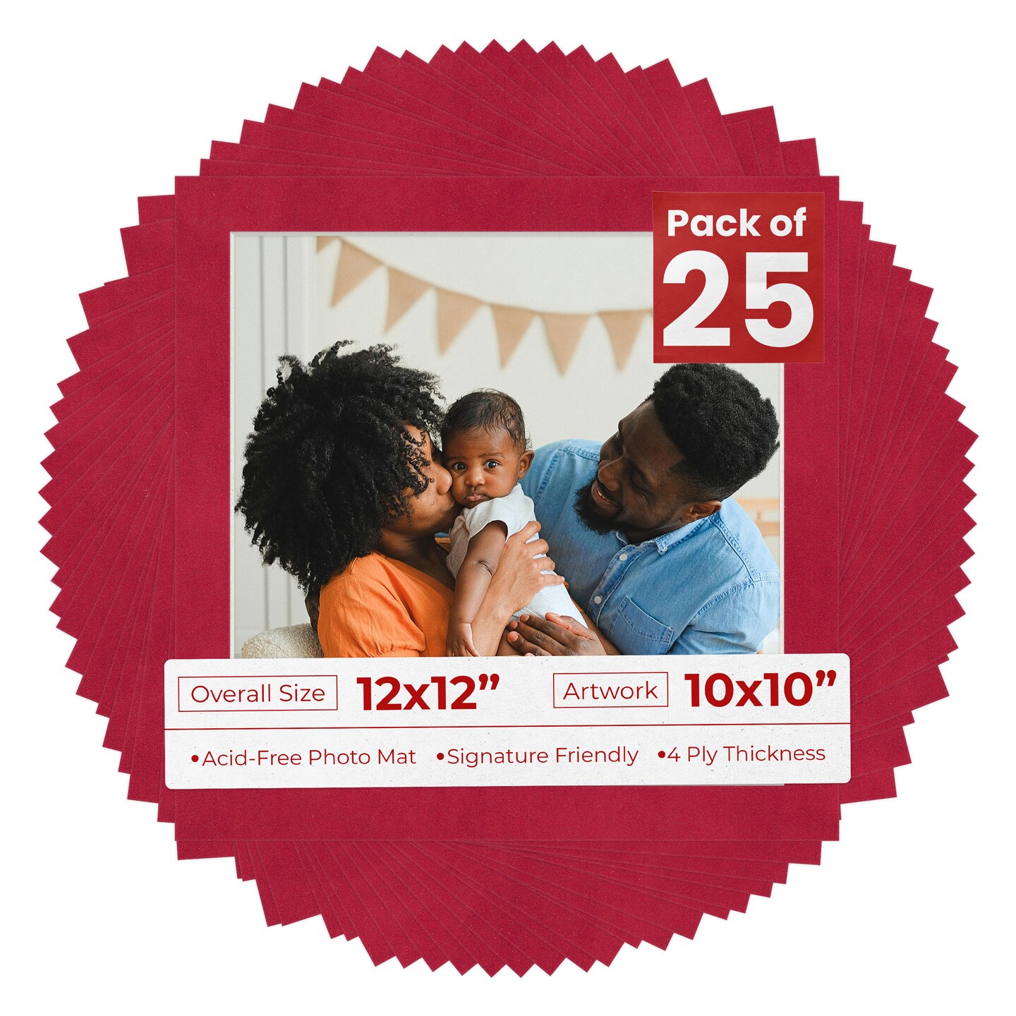 Red Suede Mat Board for 12x12 Frames - Fits 10x10 Photos