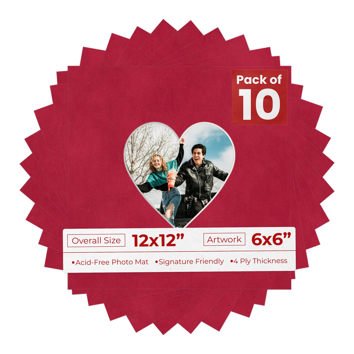 Red Suede Mat Board for 12x12 Frames - Heart Opening for 6x6 Photos