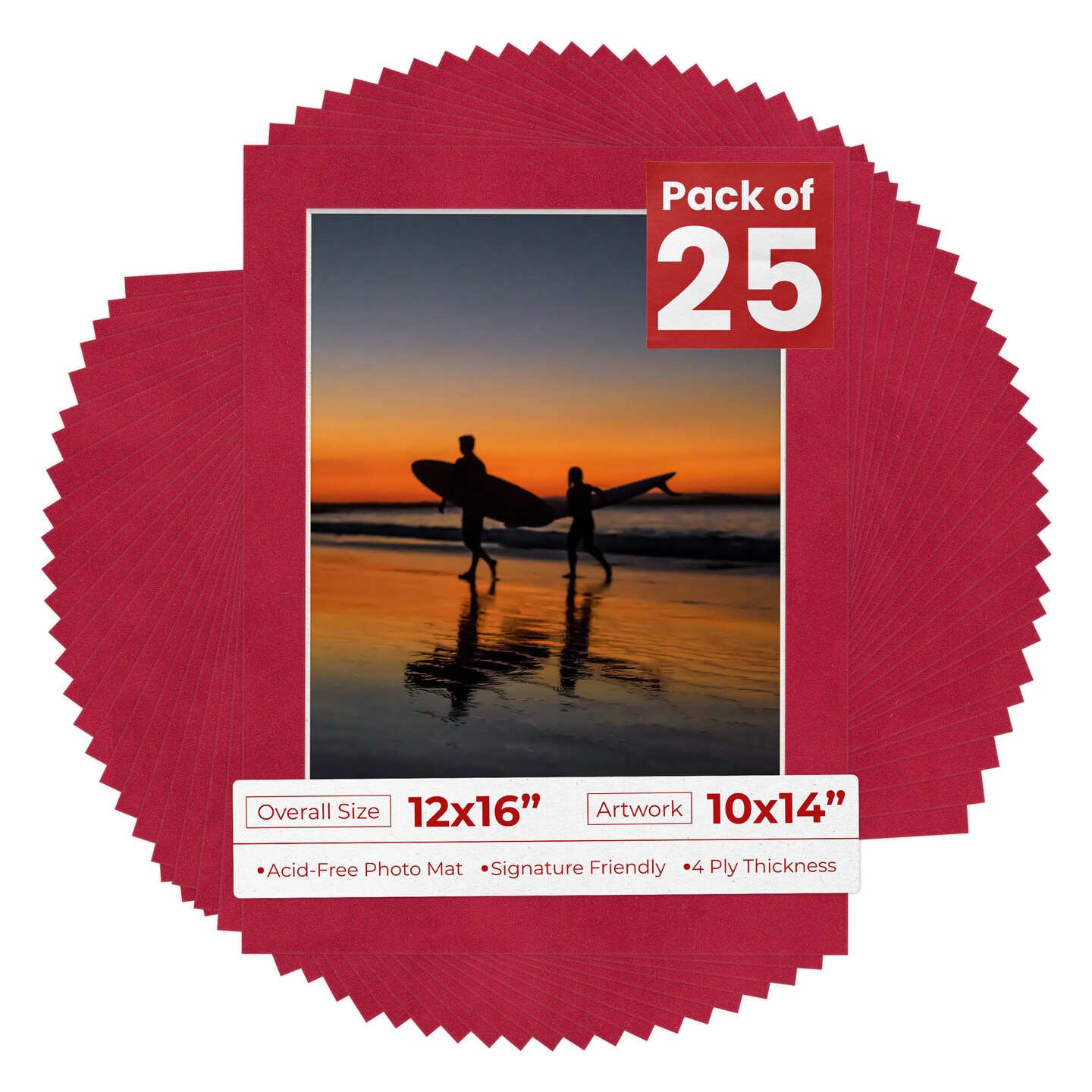 Red Suede Mat Board for 12x16 Frames - Fits 10x14 Photos