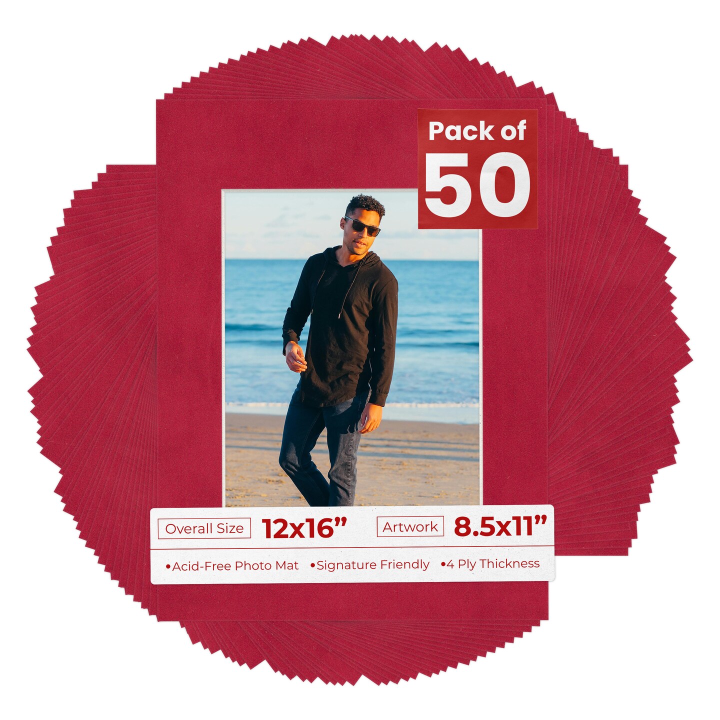Red Suede Mat Board for 12x16 Frames - Fits 8.5x11 Photos