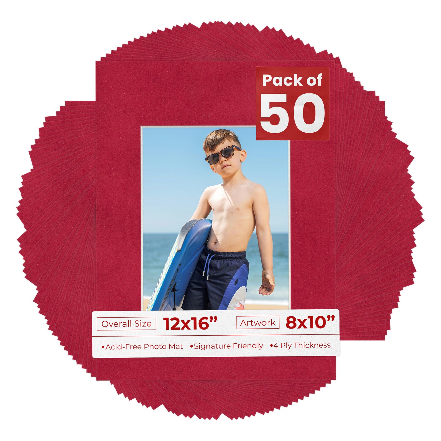 Red Suede Mat Board for 12x16 Frames - Fits 8x10 Photos