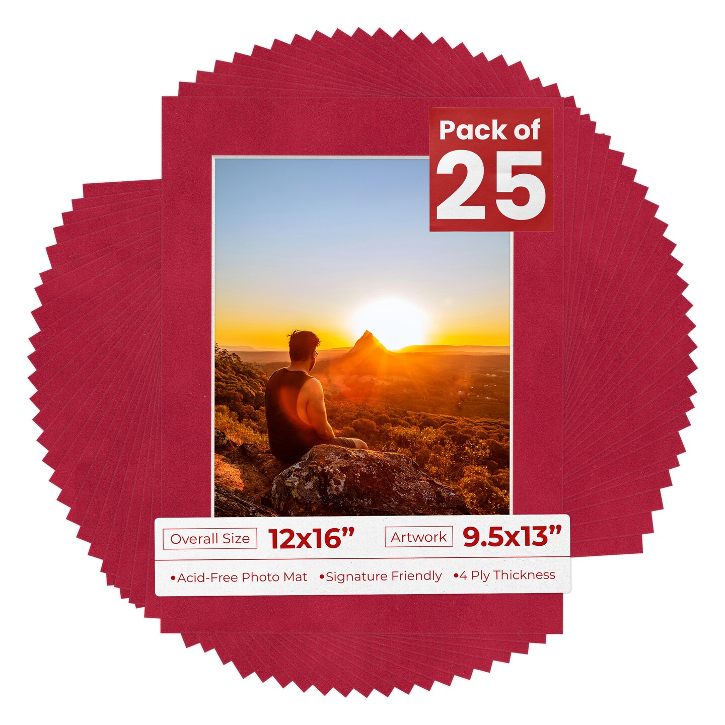 Red Suede Mat Board for 12x16 Frames - Fits 9.5x13 Photos