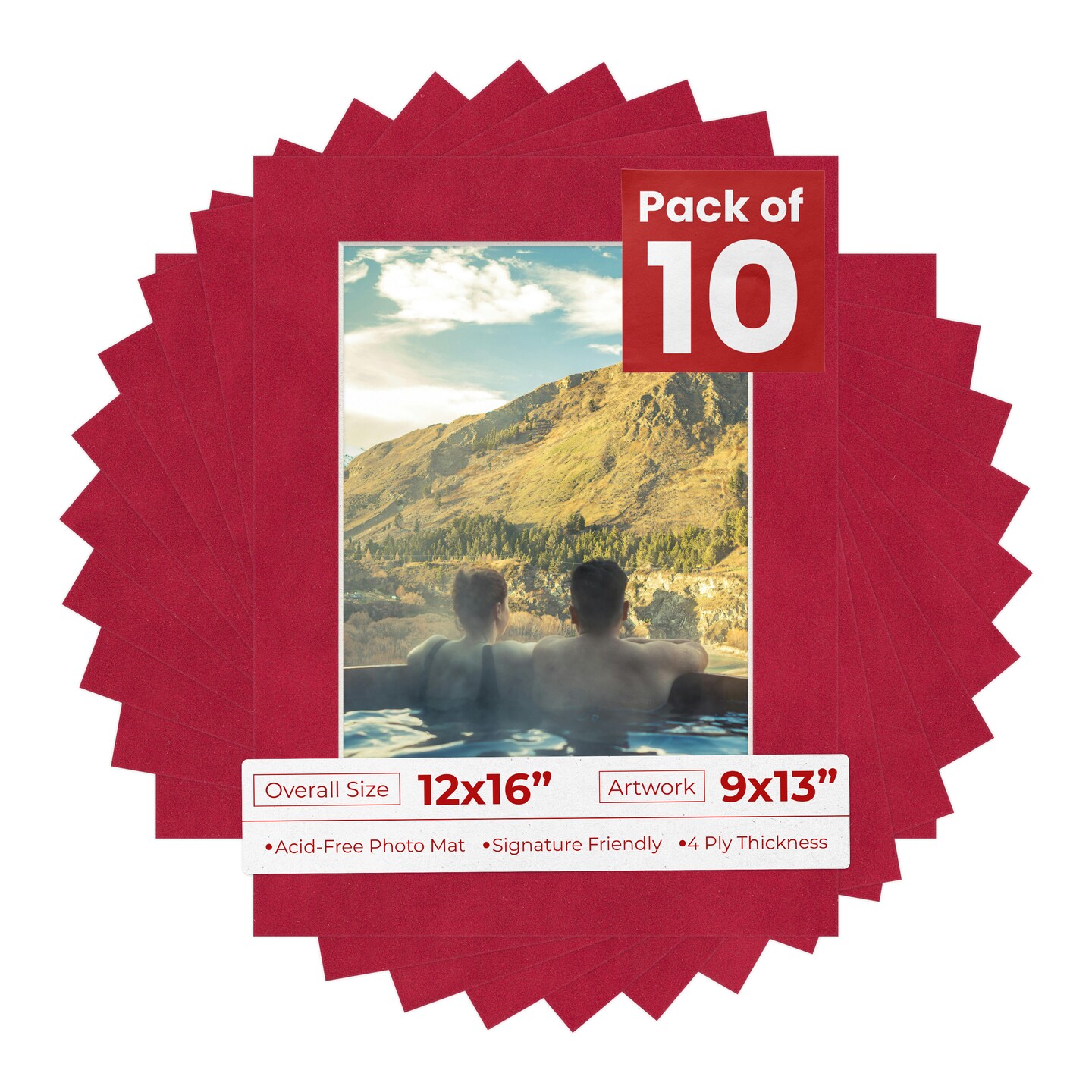 Red Suede Mat Board for 12x16 Frames - Fits 9x13 Photos