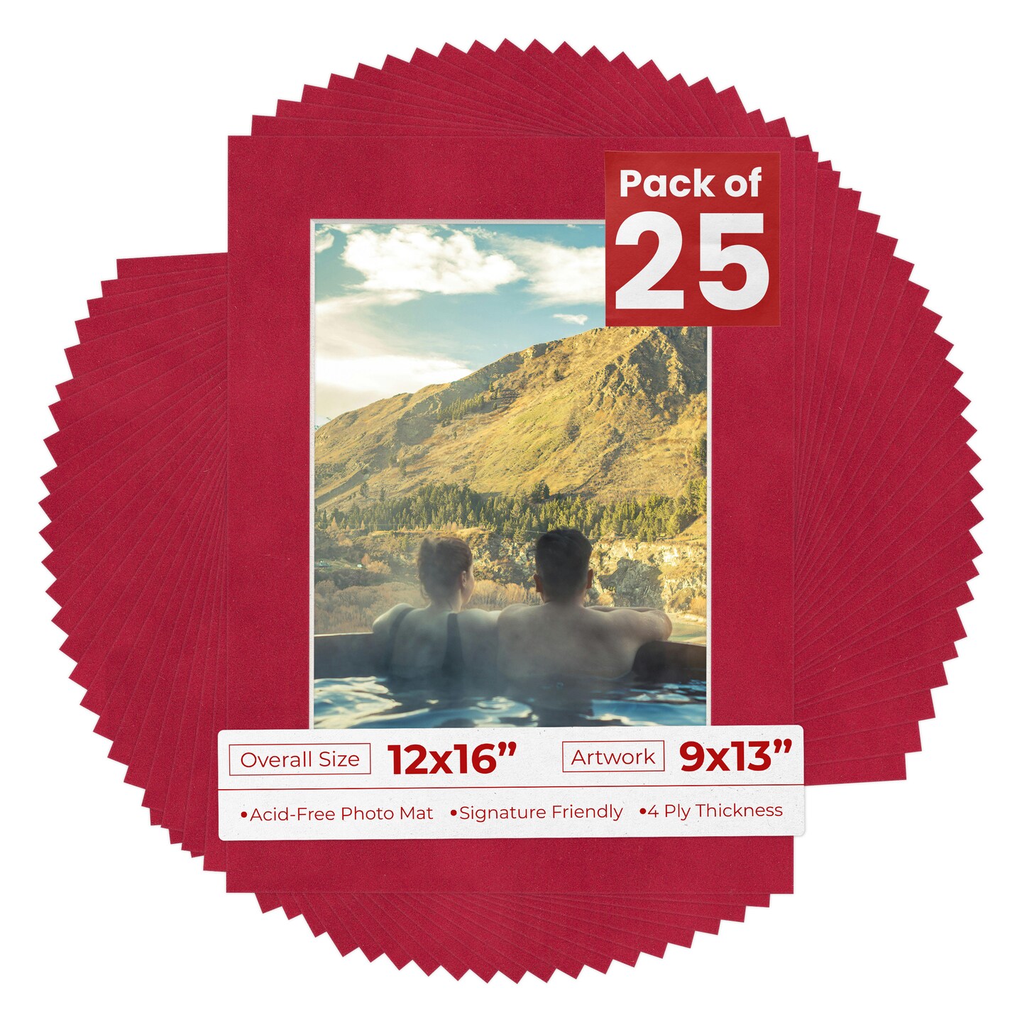 Red Suede Mat Board for 12x16 Frames - Fits 9x13 Photos