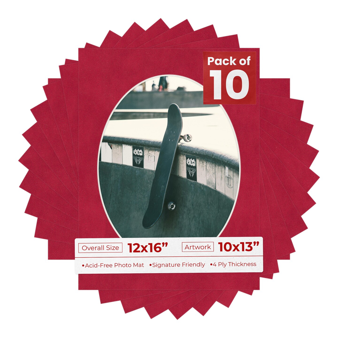 Red Suede Mat Board for 12x16 Frames - Oval Opening for 10x13 Photos