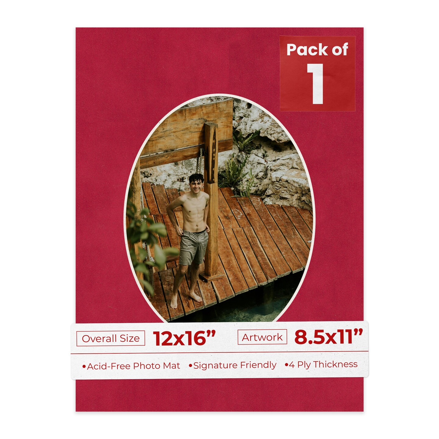 Red Suede Mat Board for 12x16 Frames - Oval Opening for 8.5x11 Photos