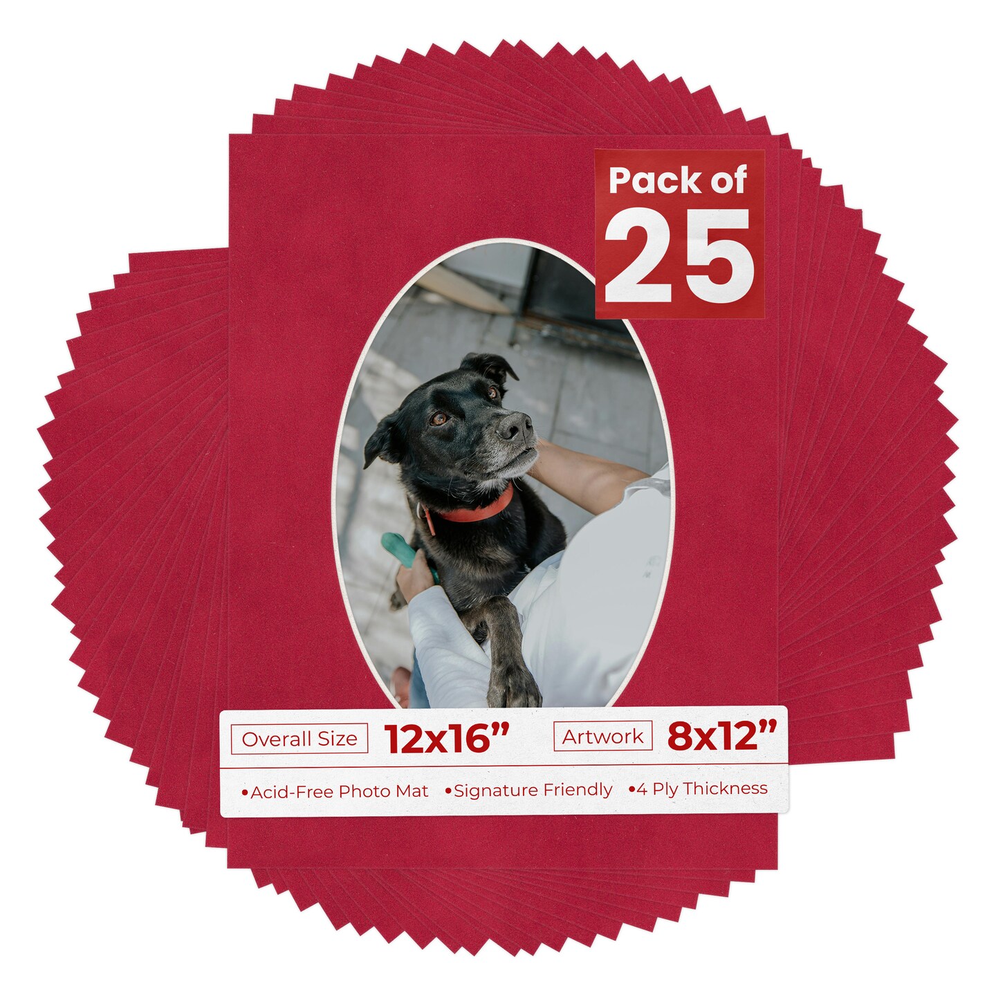 Red Suede Mat Board for 12x16 Frames - Oval Opening for 8x12 Photos
