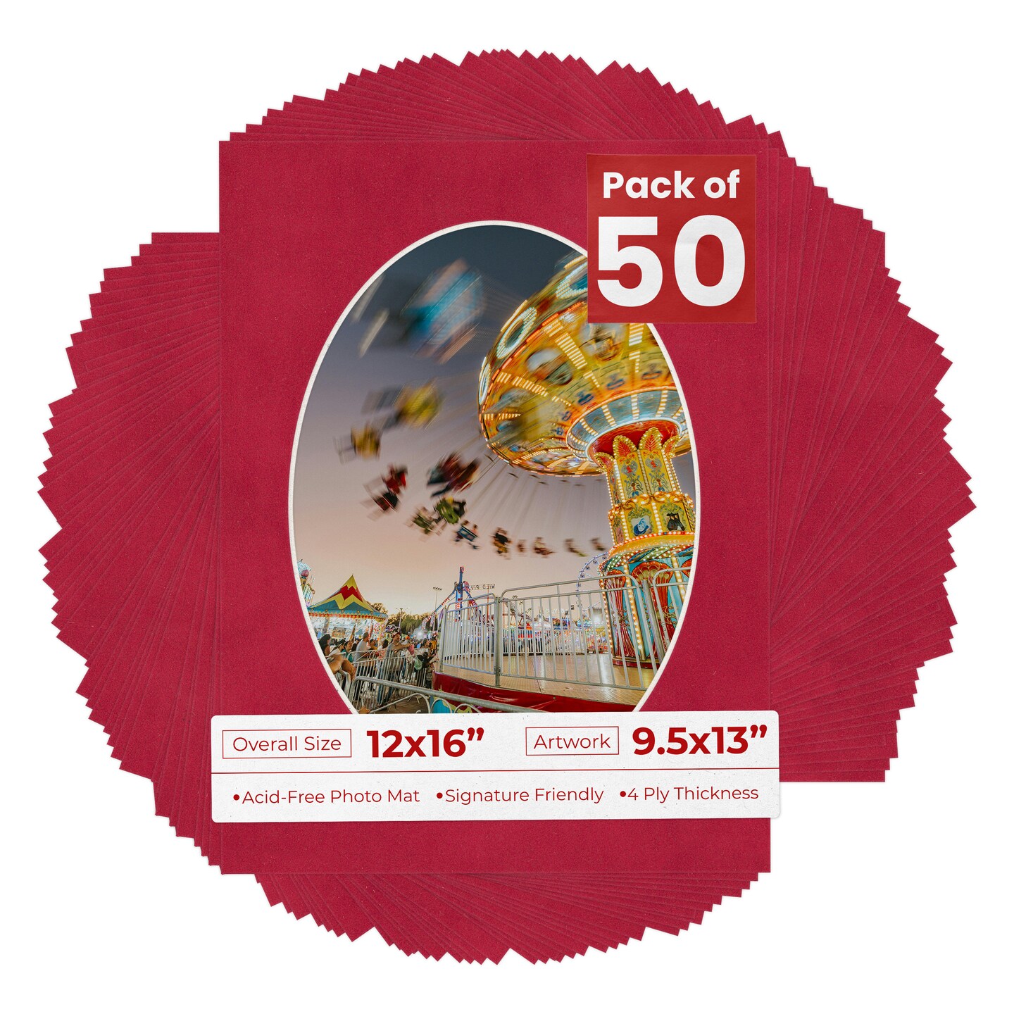Red Suede Mat Board for 12x16 Frames - Oval Opening for 9.5x13 Photos