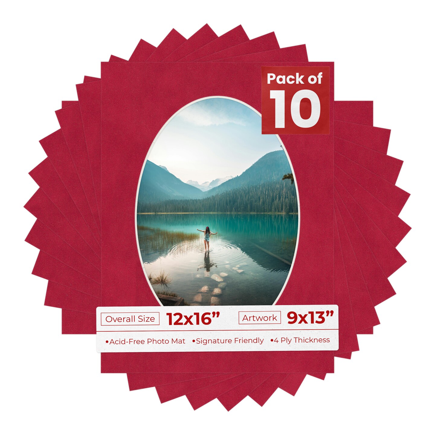 Red Suede Mat Board for 12x16 Frames - Oval Opening for 9x13 Photos