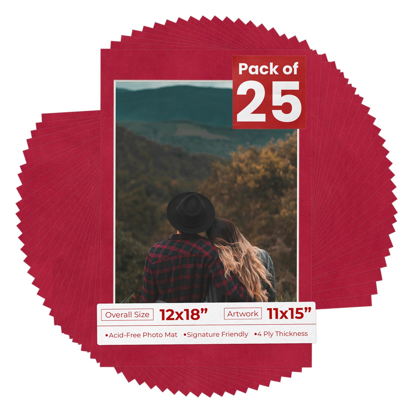 Red Suede Mat Board for 12x18 Frames - Fits 11x15 Photos