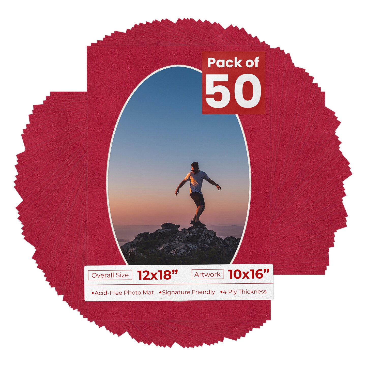Red Suede Mat Board for 12x18 Frames - Oval Opening for 10x16 Photos