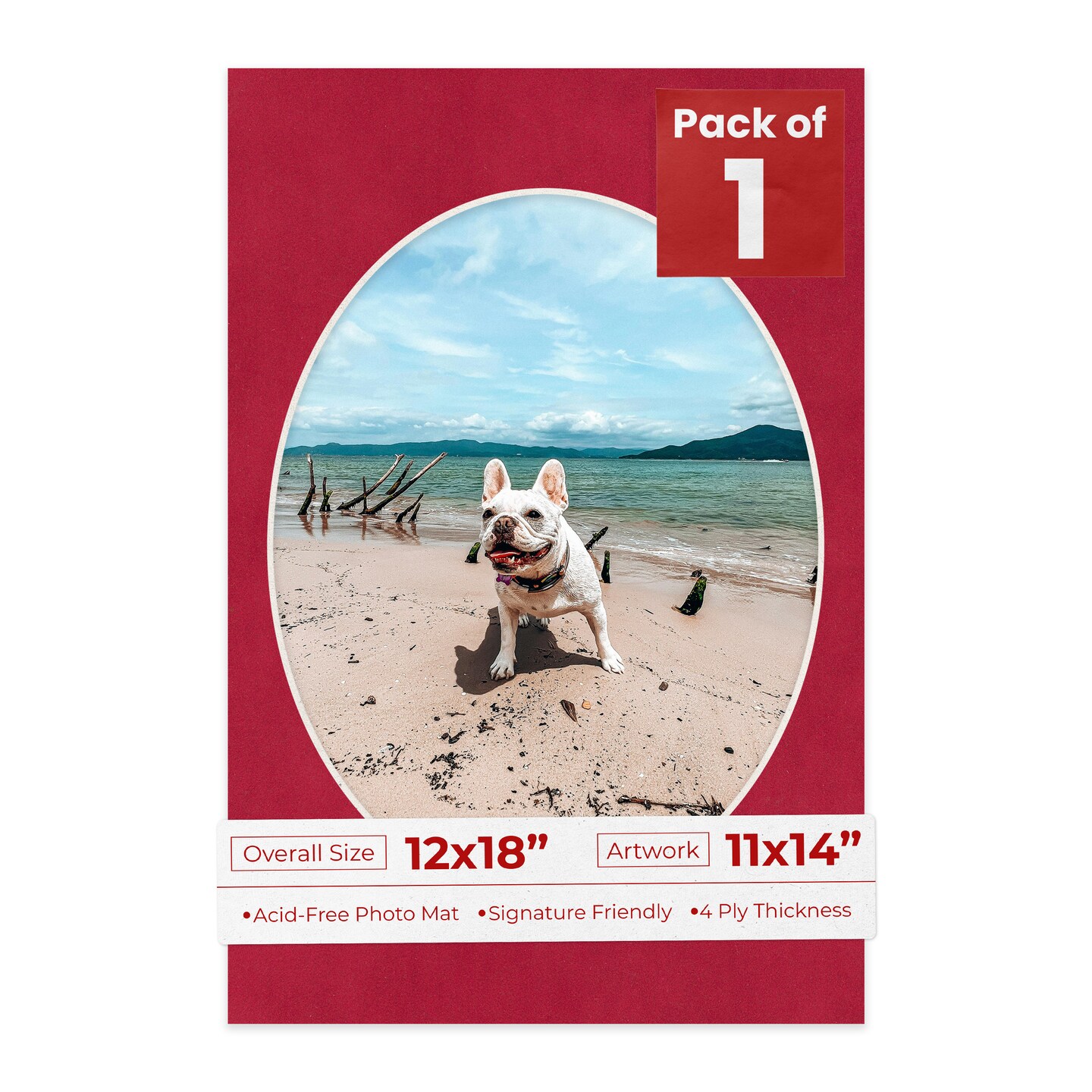 Red Suede Mat Board for 12x18 Frames - Oval Opening for 11x14 Photos