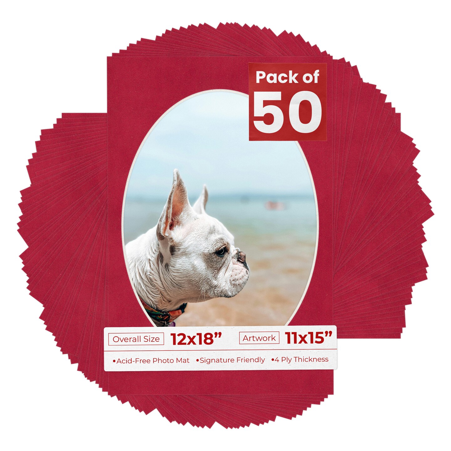 Red Suede Mat Board for 12x18 Frames - Oval Opening for 11x15 Photos
