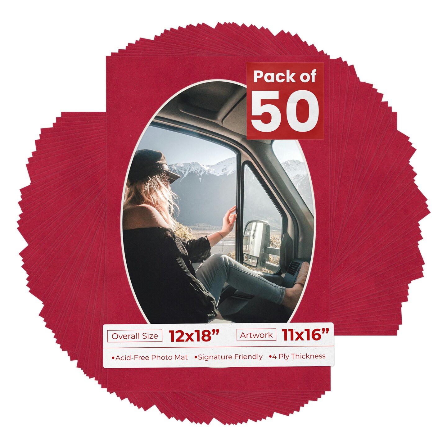 Red Suede Mat Board for 12x18 Frames - Oval Opening for 11x16 Photos