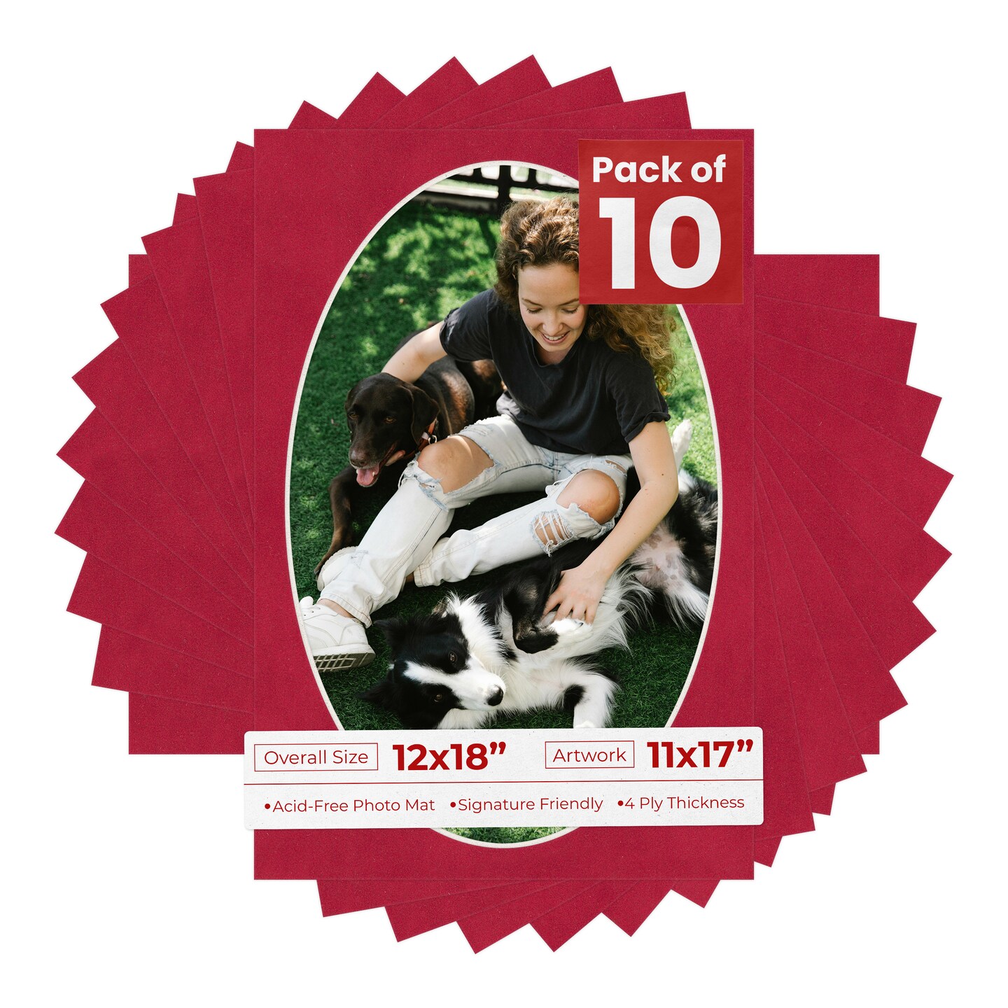 Red Suede Mat Board for 12x18 Frames - Oval Opening for 11x17 Photos