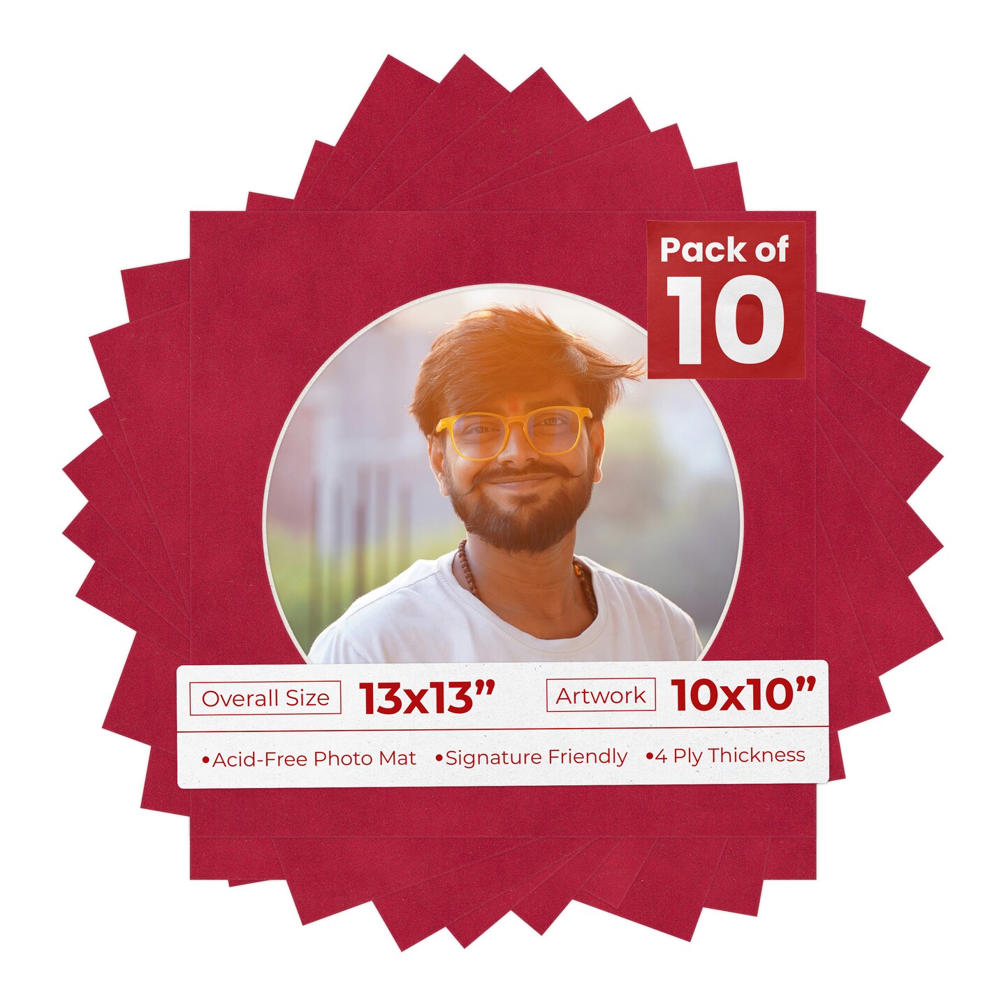 Red Suede Mat Board for 13x13 Frames - Circle Opening for 10x10 Photos