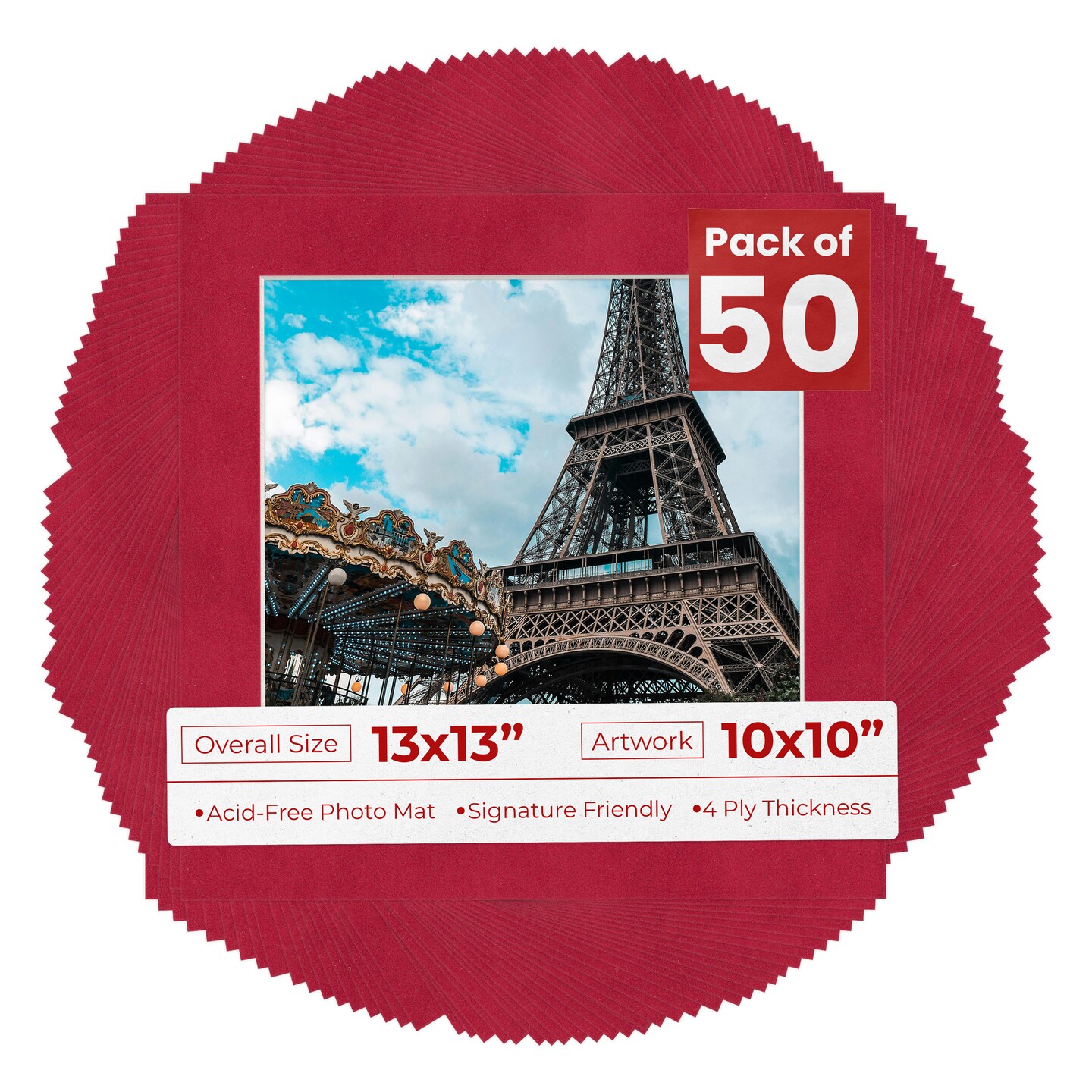 Red Suede Mat Board for 13x13 Frames - Fits 10x10 Photos