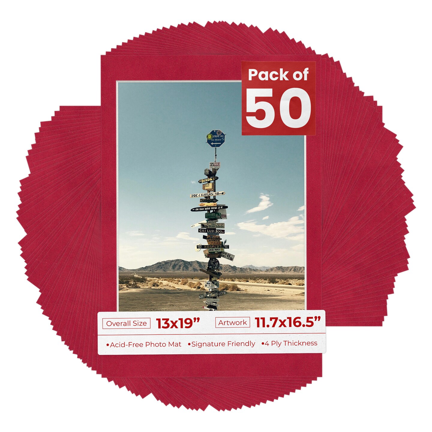 Red Suede Mat Board for 13x19 Frames - Fits 11.7x16.5 Photos