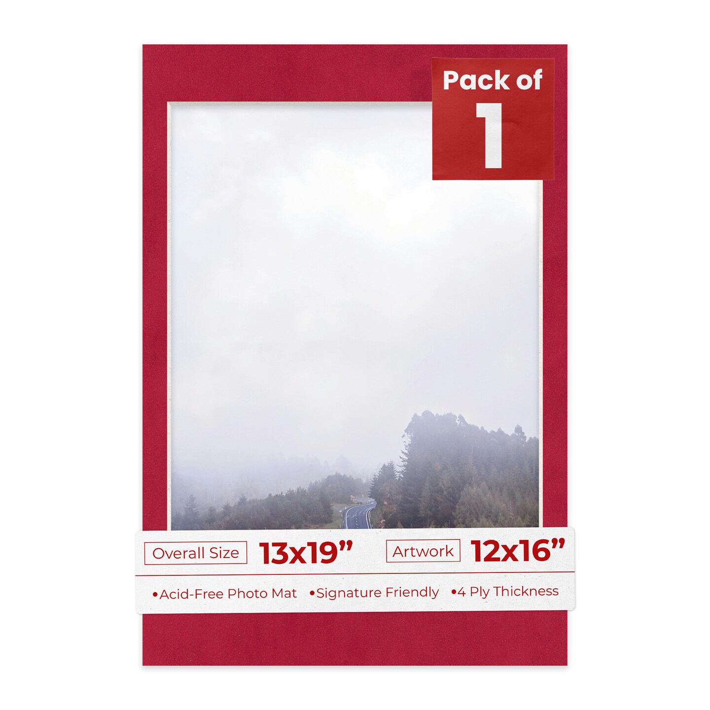 Red Suede Mat Board for 13x19 Frames - Fits 12x16 Photos