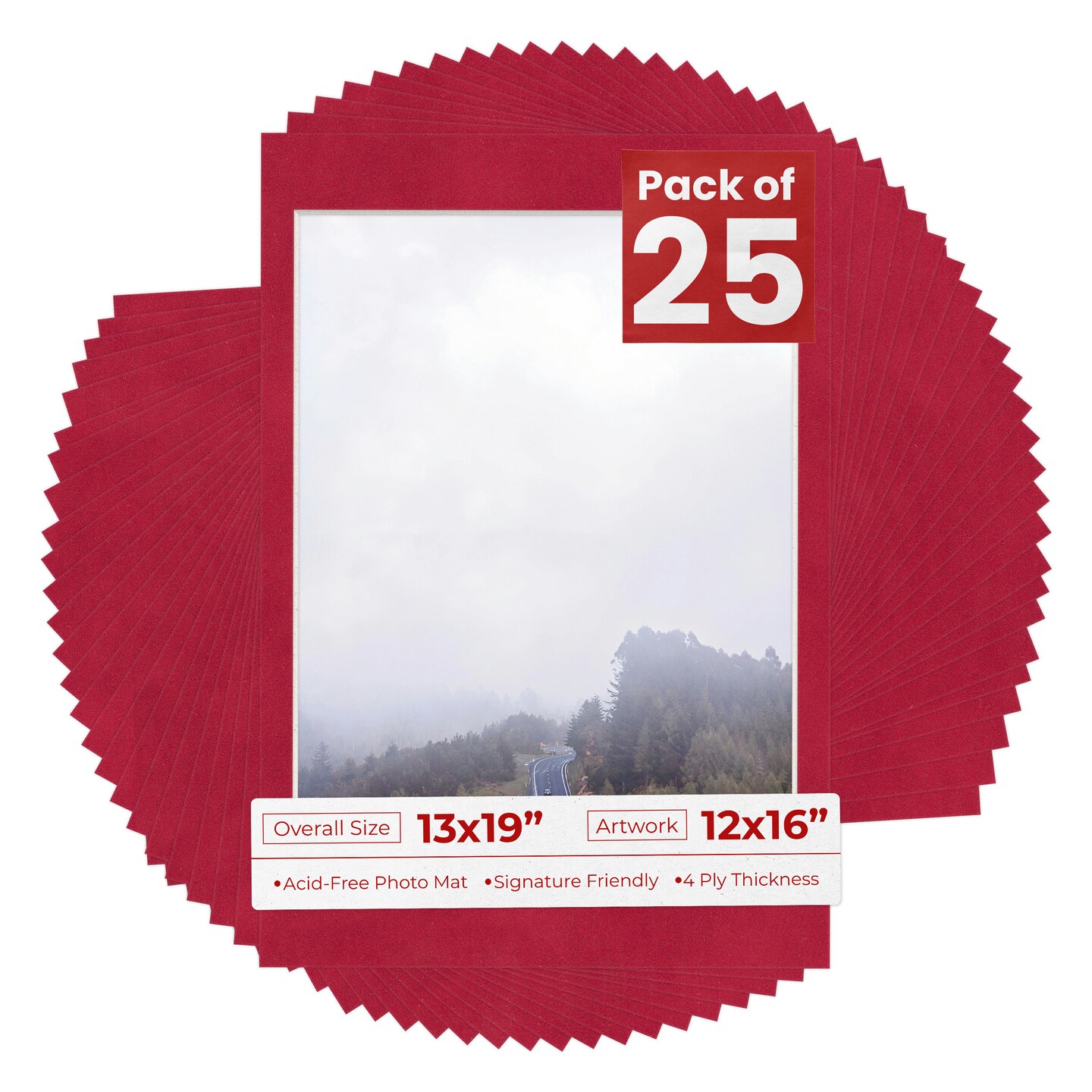 Red Suede Mat Board for 13x19 Frames - Fits 12x16 Photos