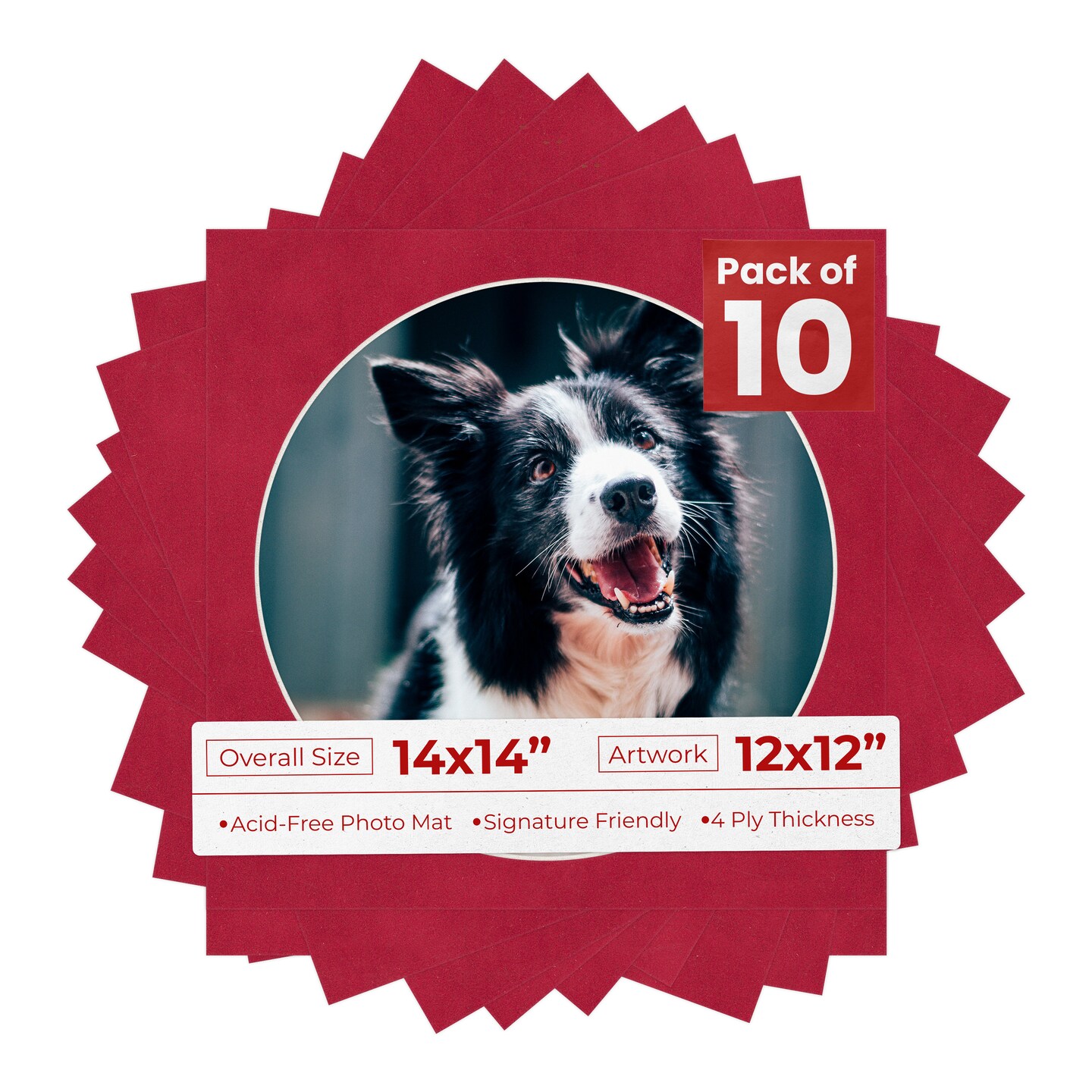 Red Suede Mat Board for 14x14 Frames - Circle Opening for 12x12 Photos