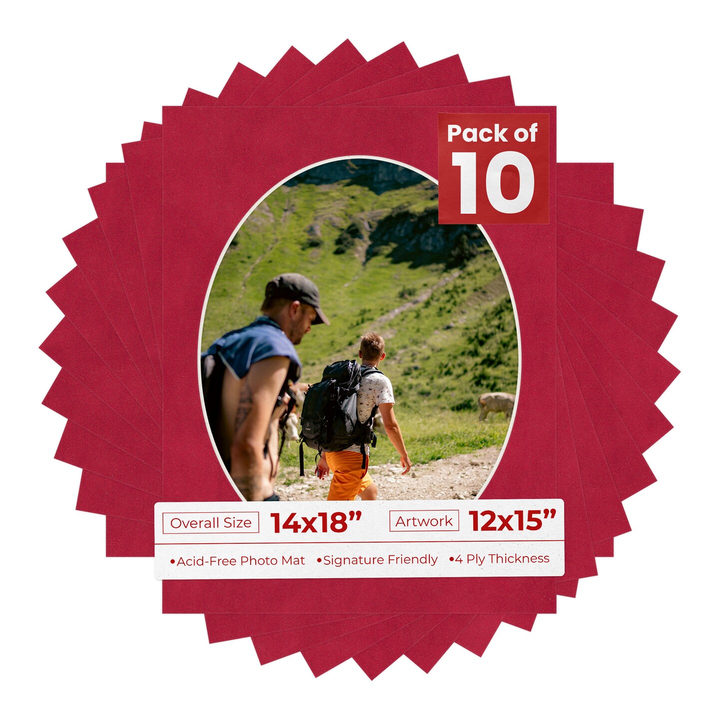 Red Suede Mat Board for 14x18 Frames - Oval Opening for 12x15 Photos