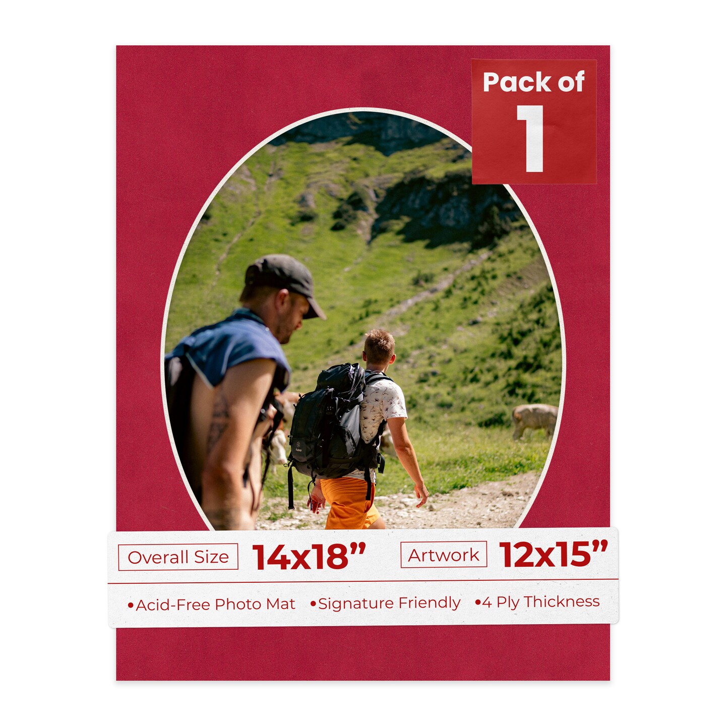 Red Suede Mat Board for 14x18 Frames - Oval Opening for 12x15 Photos
