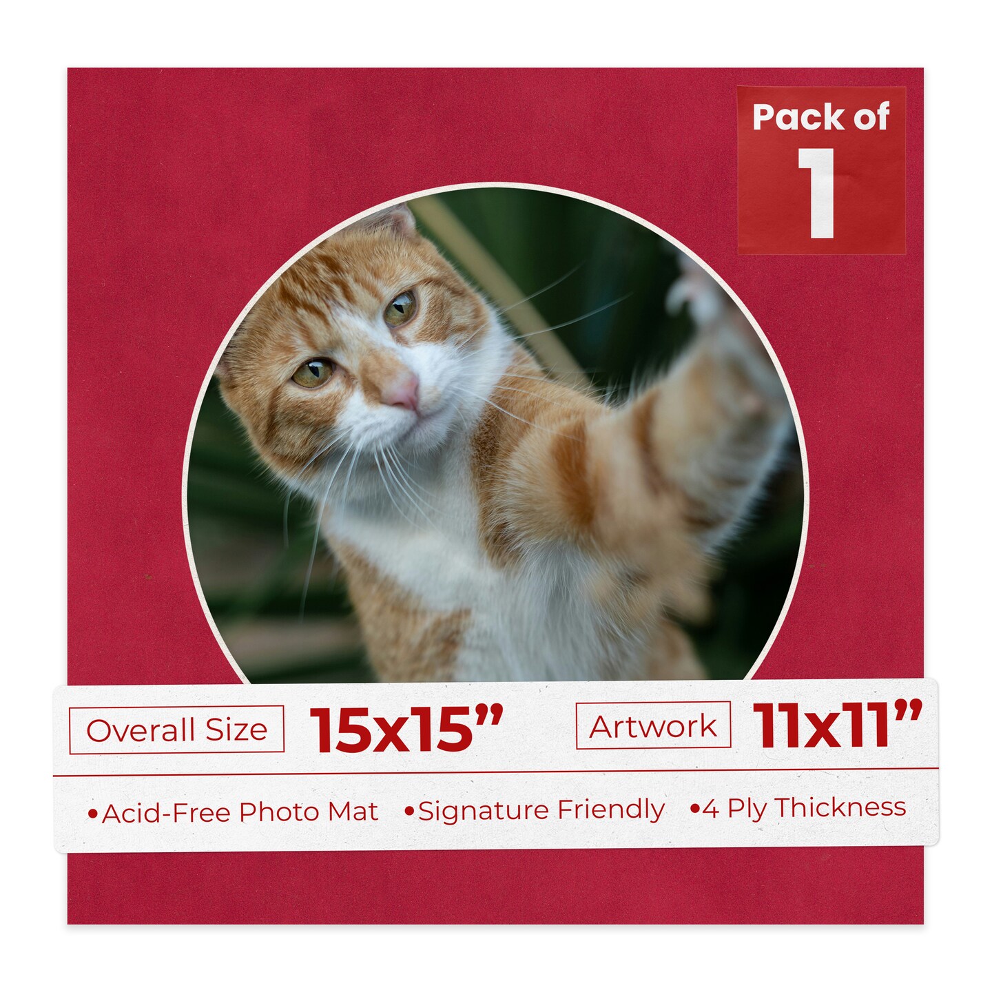 Red Suede Mat Board for 15x15 Frames - Circle Opening for 11x11 Photos