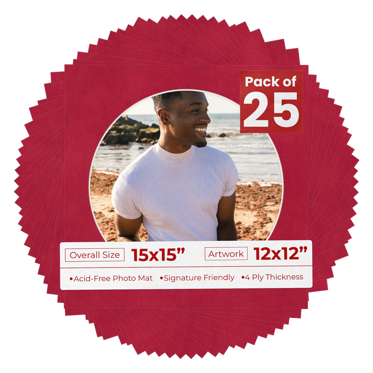Red Suede Mat Board for 15x15 Frames - Circle Opening for 12x12 Photos