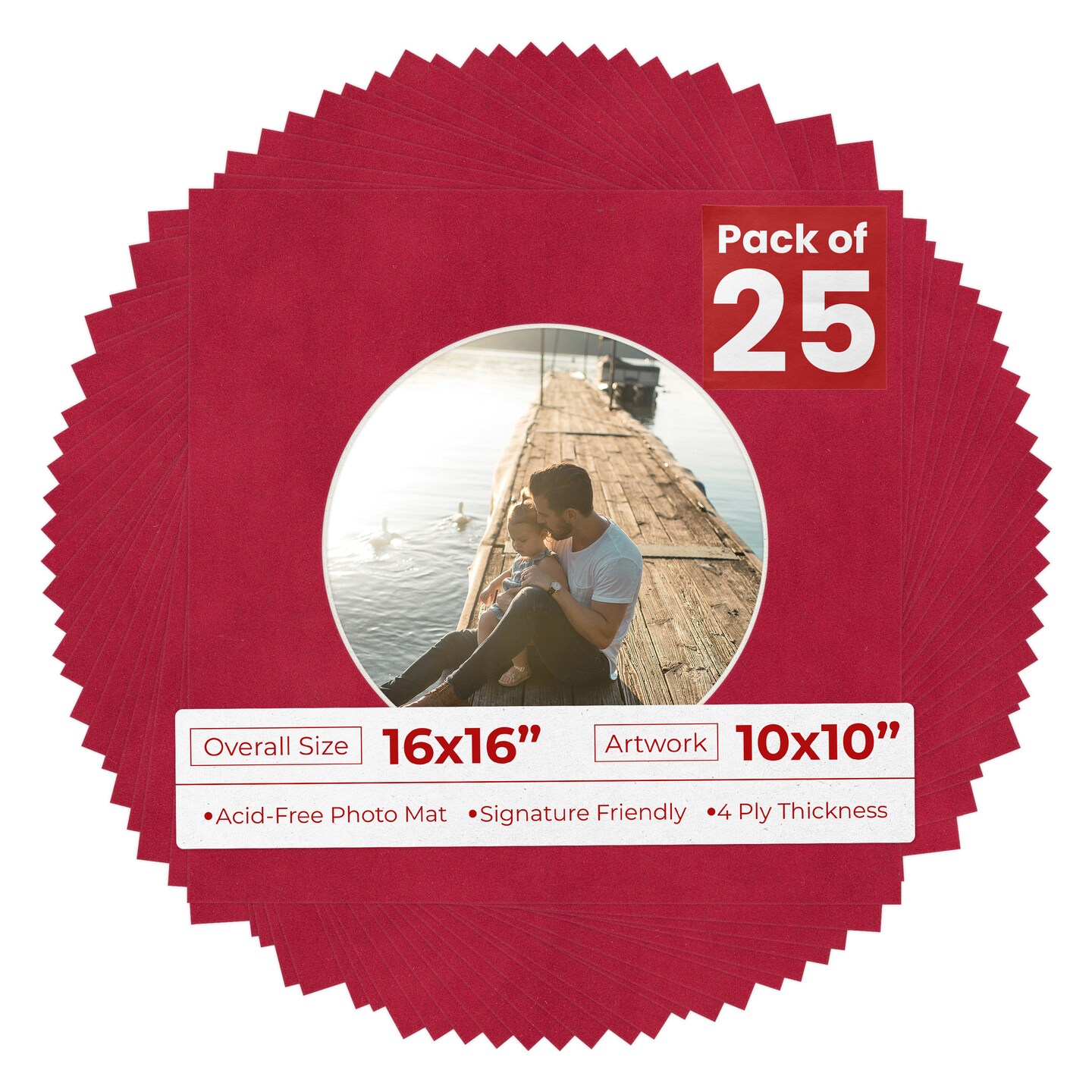 Red Suede Mat Board for 16x16 Frames - Circle Opening for 10x10 Photos