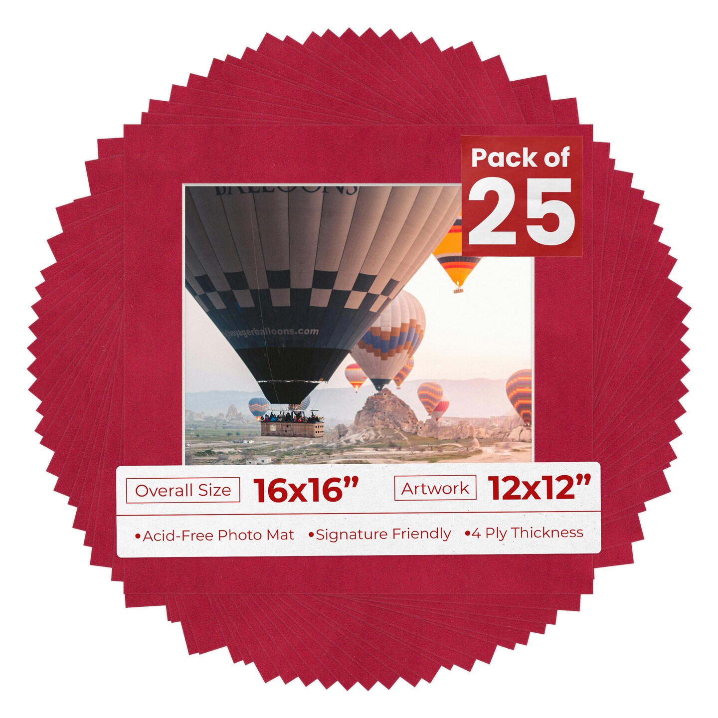 Red Suede Mat Board for 16x16 Frames - Fits 12x12 Photos