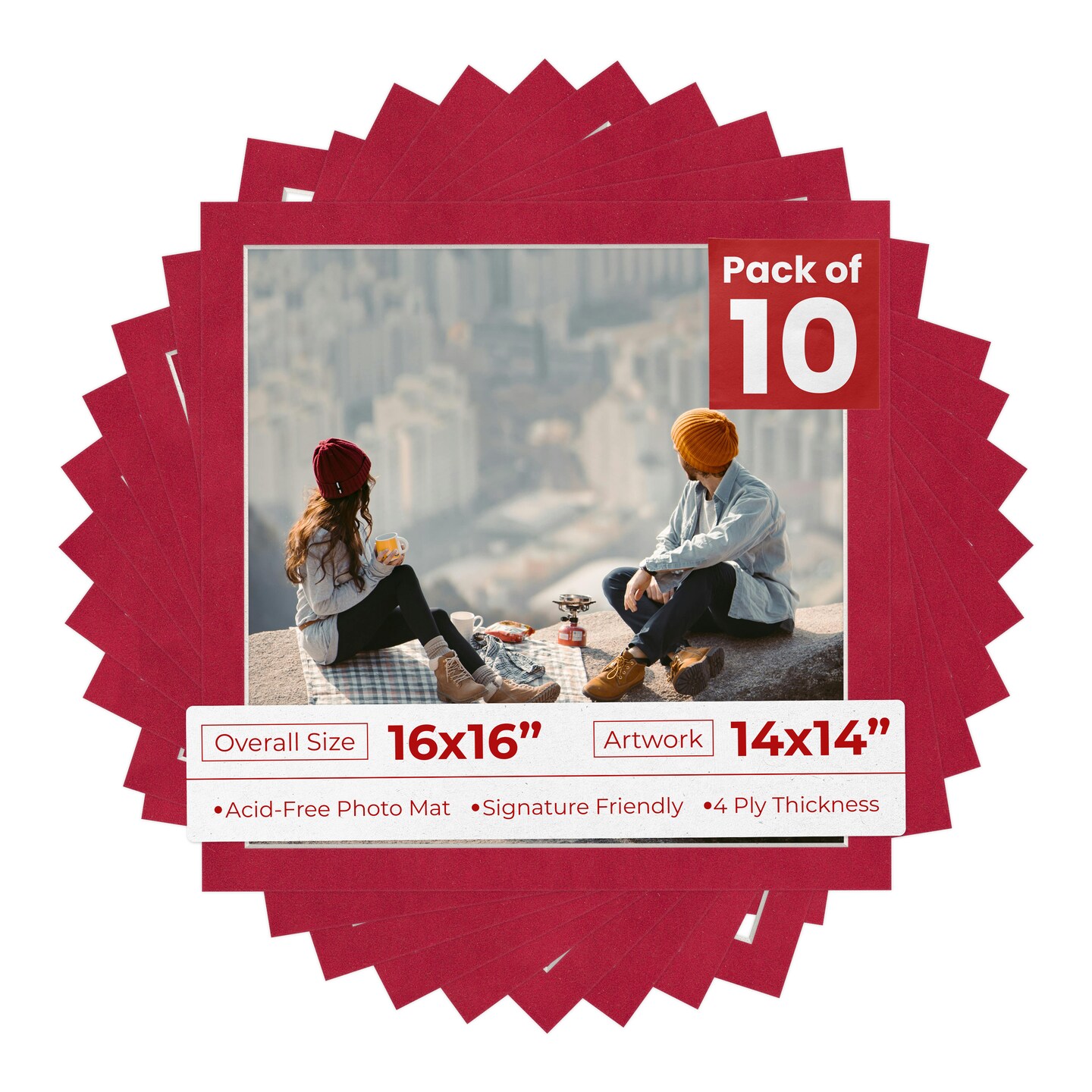 Red Suede Mat Board for 16x16 Frames - Fits 14x14 Photos