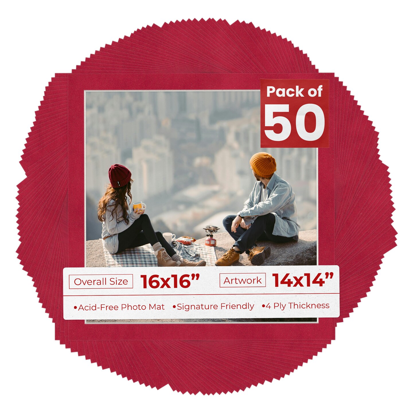 Red Suede Mat Board for 16x16 Frames - Fits 14x14 Photos