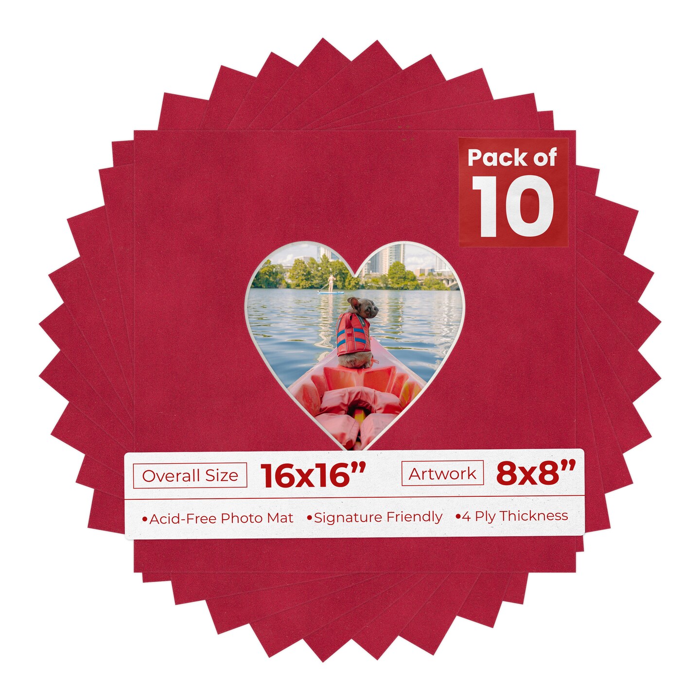 Red Suede Mat Board for 16x16 Frames - Heart Opening for 8x8 Photos