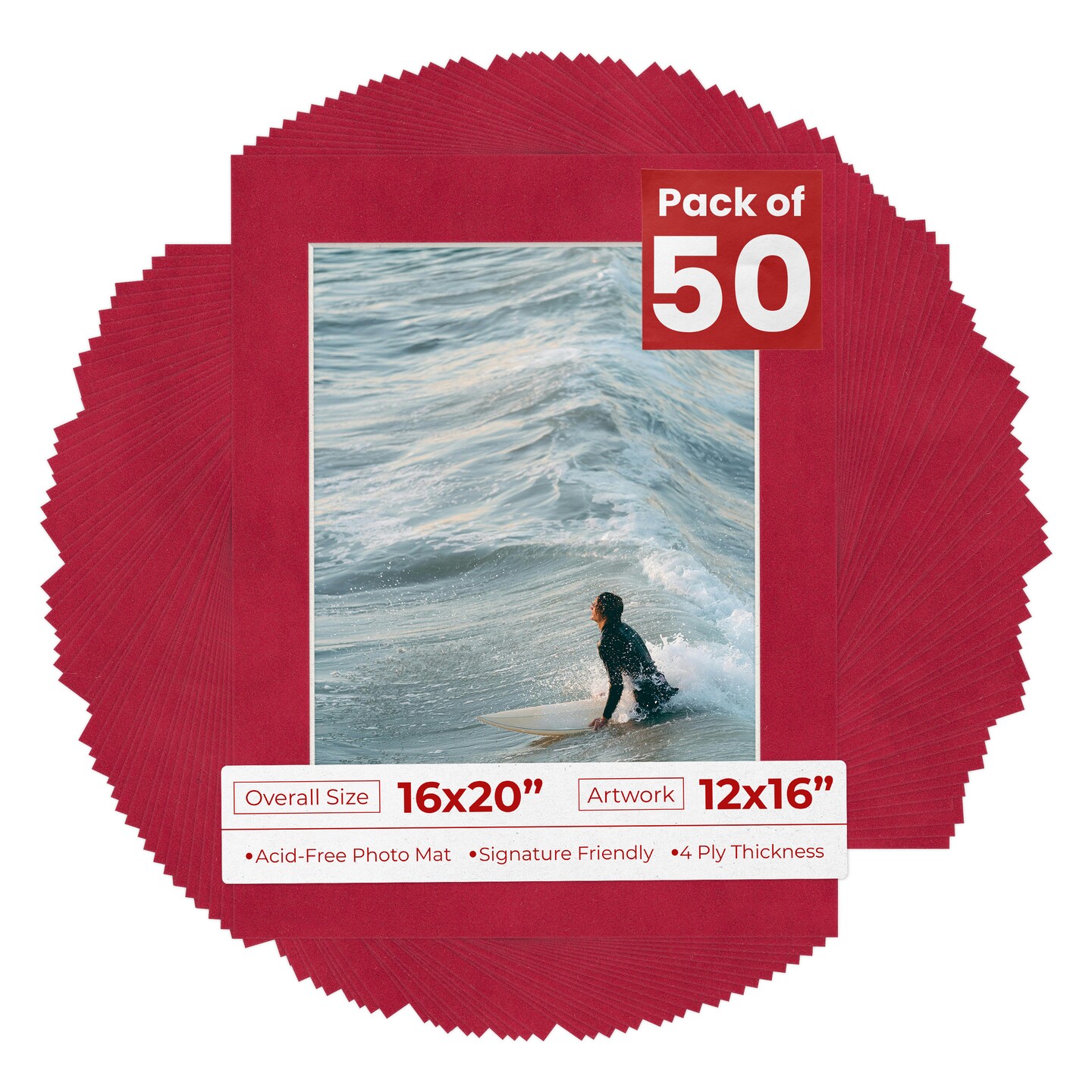 Red Suede Mat Board for 16x20 Frames - Fits 12x16 Photos