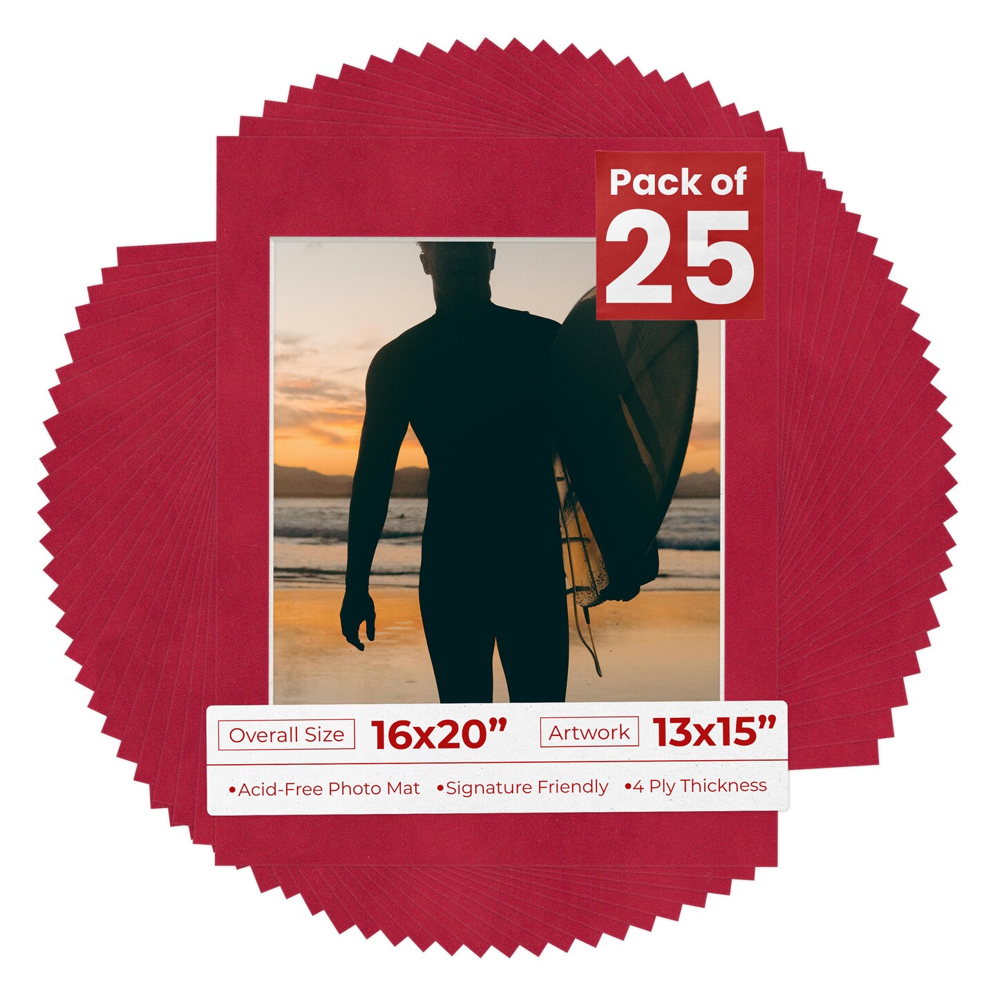 Red Suede Mat Board for 16x20 Frames - Fits 13x15 Photos