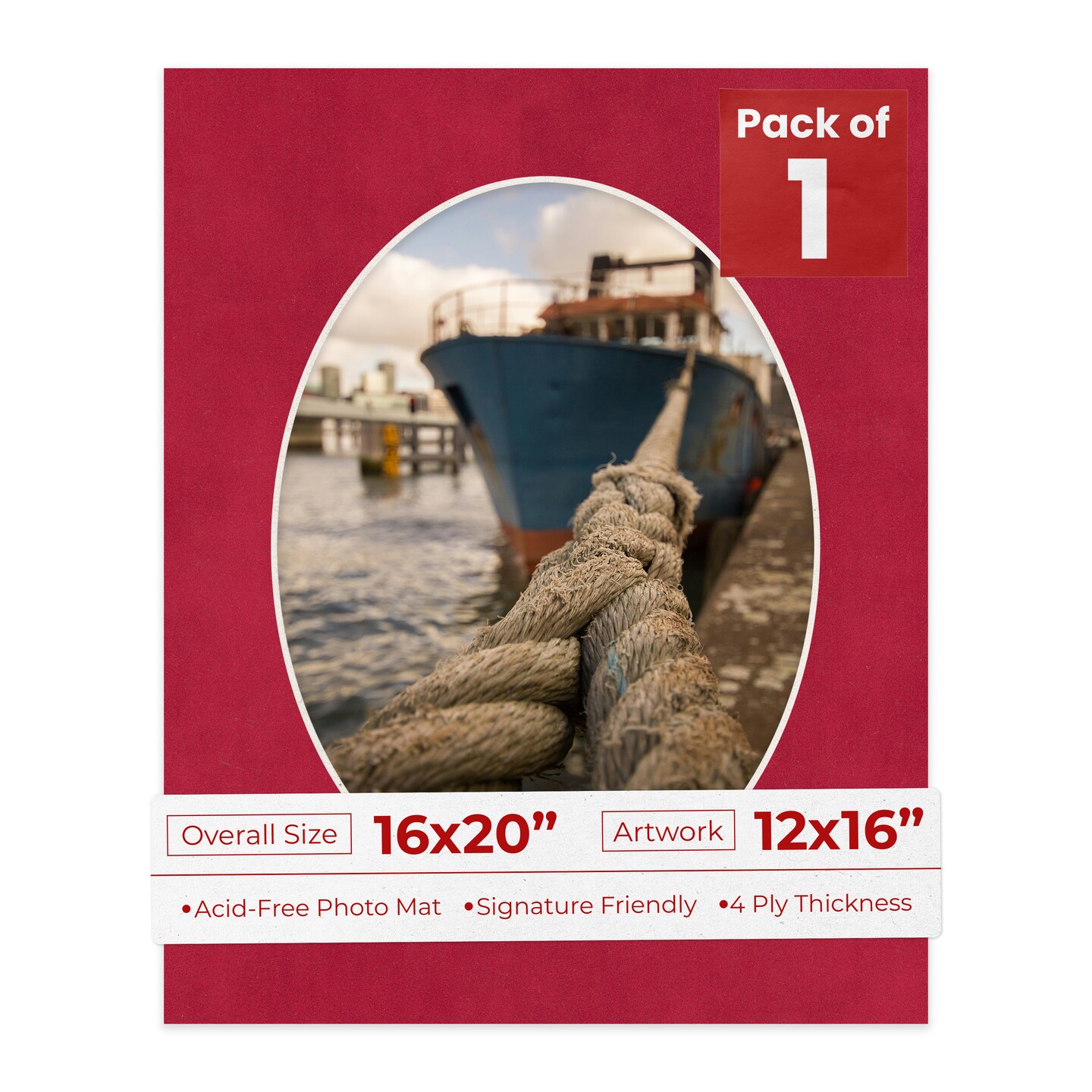 Red Suede Mat Board for 16x20 Frames - Oval Opening for 12x16 Photos