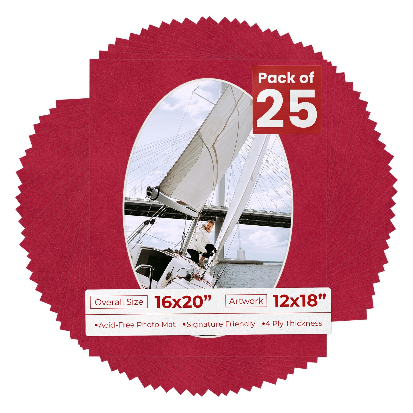 Red Suede Mat Board for 16x20 Frames - Oval Opening for 12x18 Photos