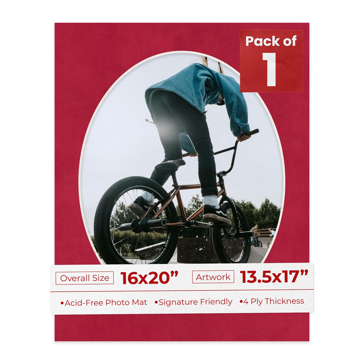 Red Suede Mat Board for 16x20 Frames - Oval Opening for 13.5x17 Photos
