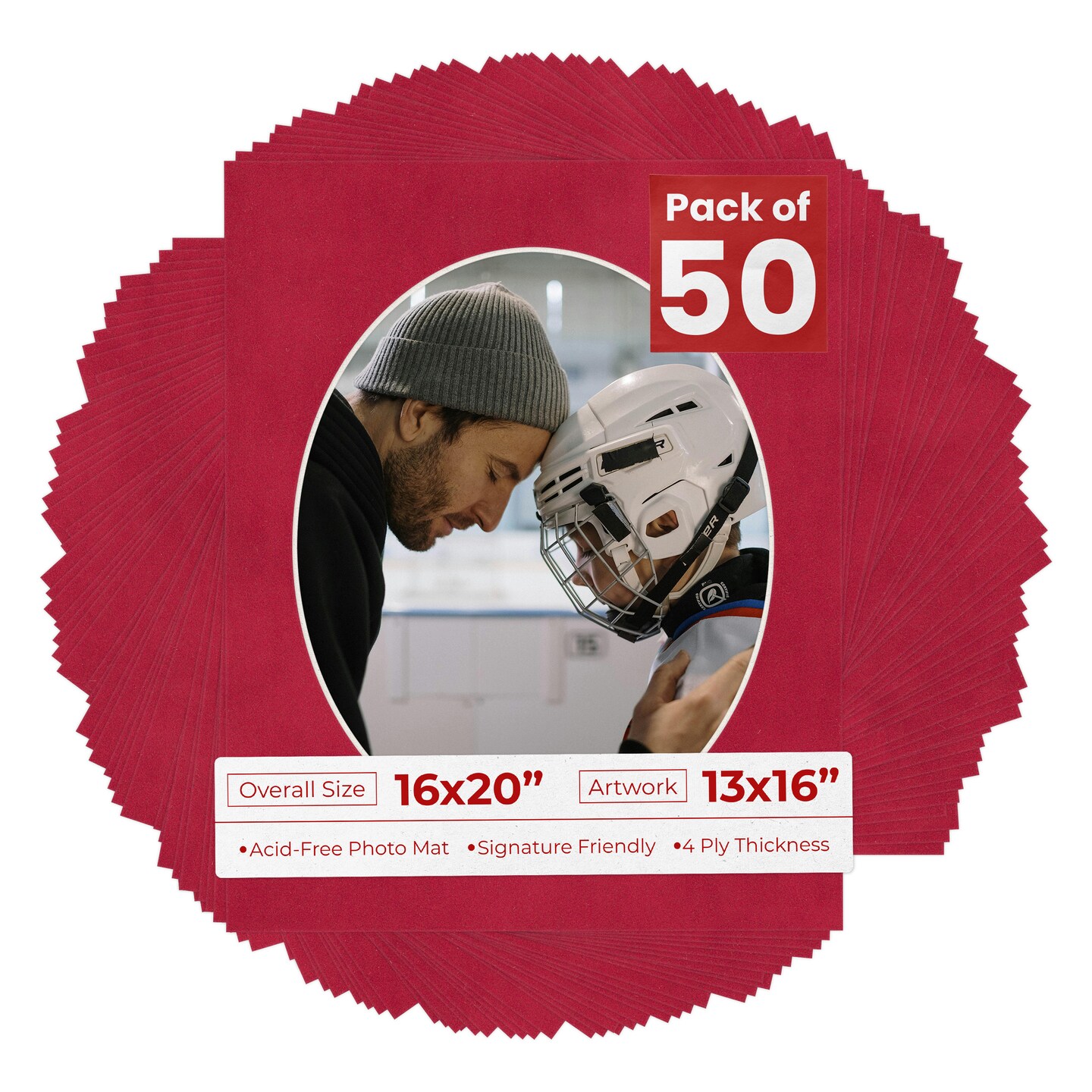 Red Suede Mat Board for 16x20 Frames - Oval Opening for 13x16 Photos