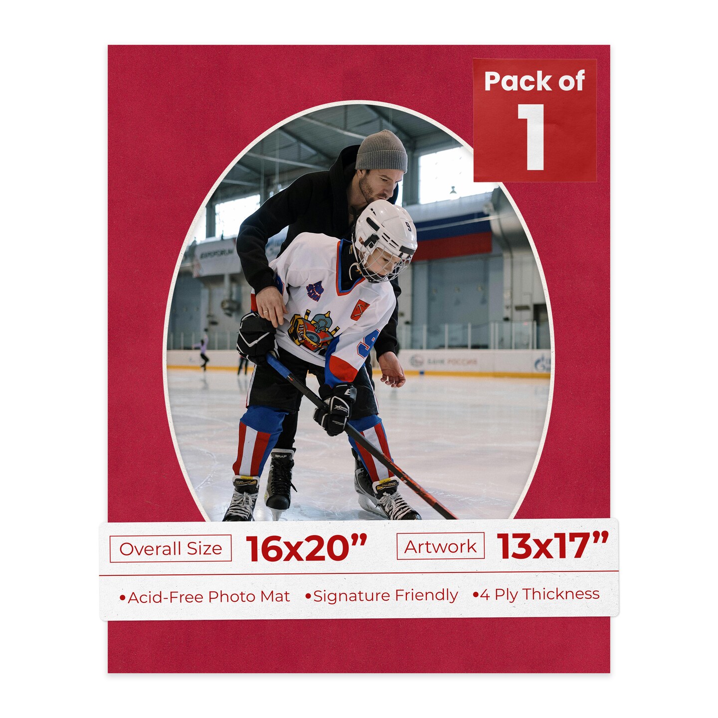 Red Suede Mat Board for 16x20 Frames - Oval Opening for 13x17 Photos