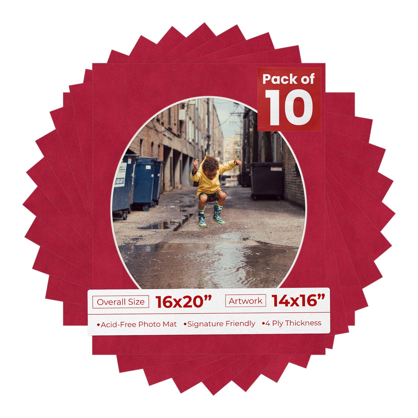 Red Suede Mat Board for 16x20 Frames - Oval Opening for 14x16 Photos