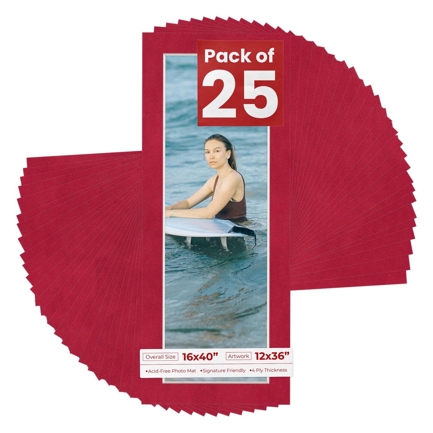 Red Suede Mat Board for 16x40 Frames - Fits 12x36 Photos