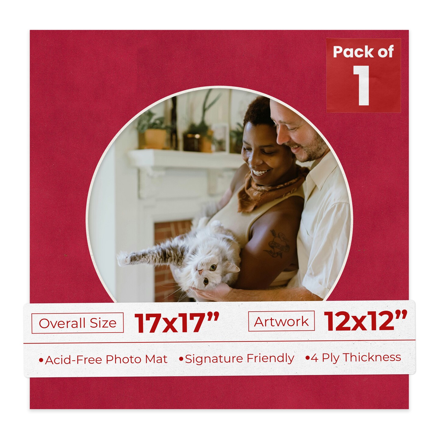 Red Suede Mat Board for 17x17 Frames - Circle Opening for 12x12 Photos