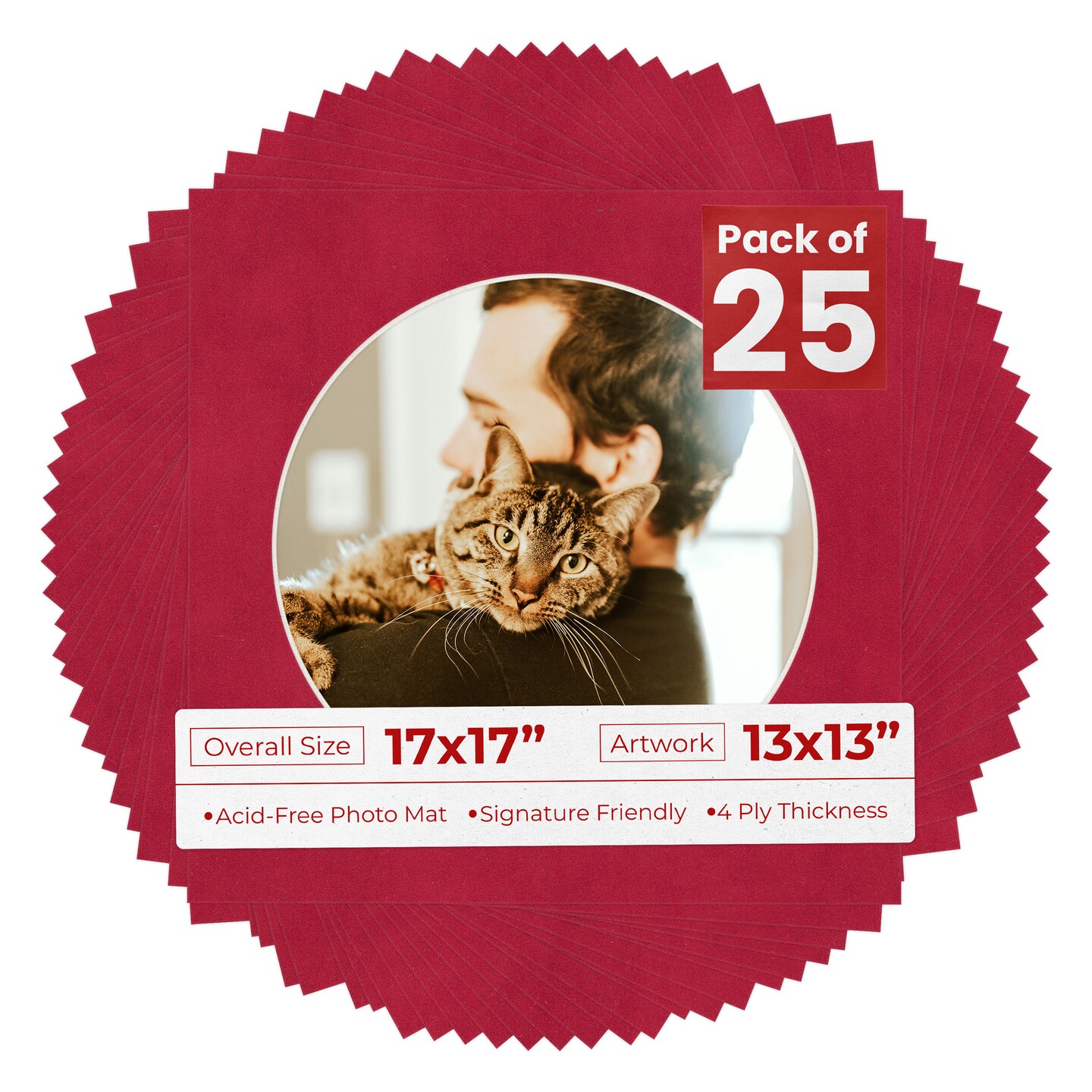 Red Suede Mat Board for 17x17 Frames - Circle Opening for 13x13 Photos