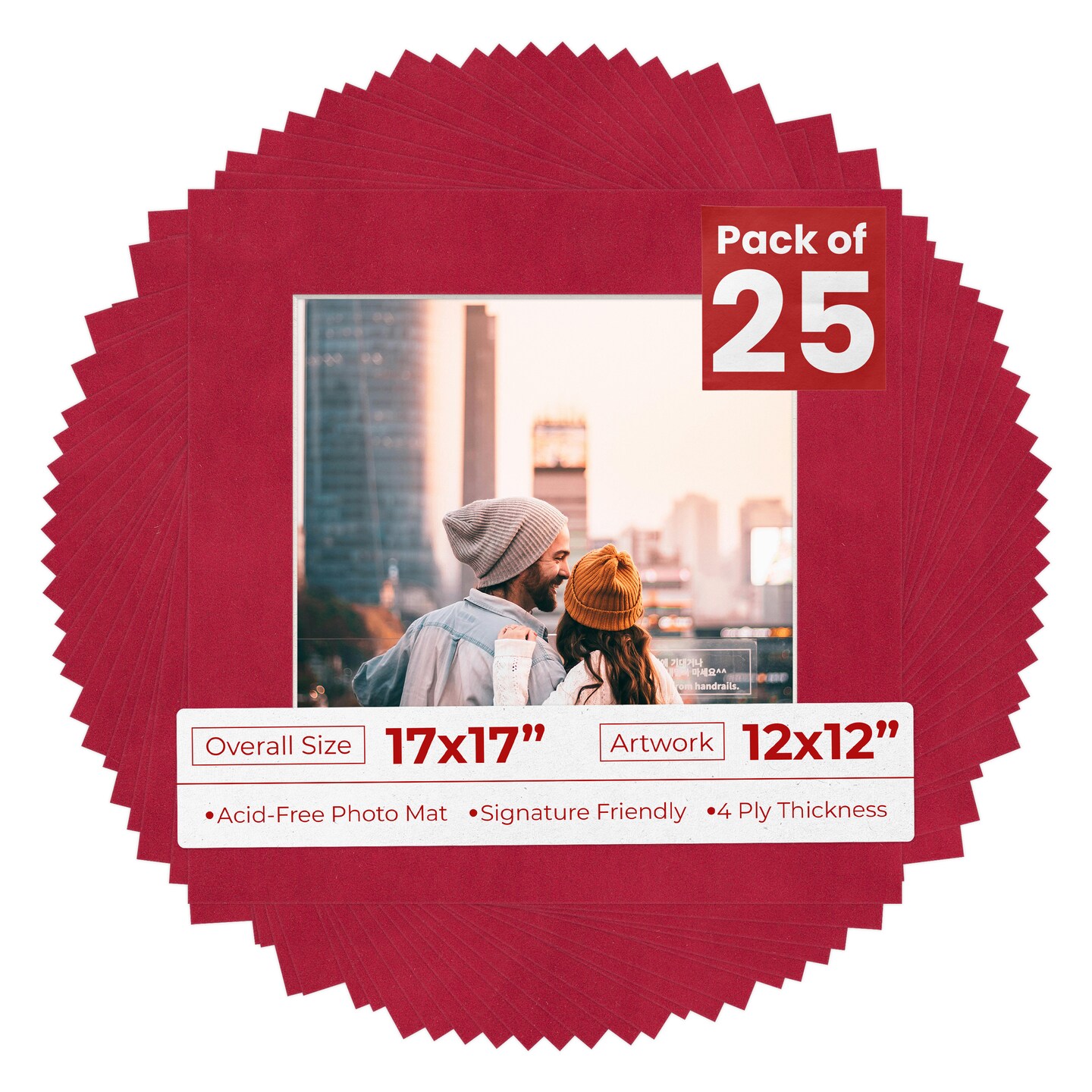 Red Suede Mat Board for 17x17 Frames - Fits 12x12 Photos