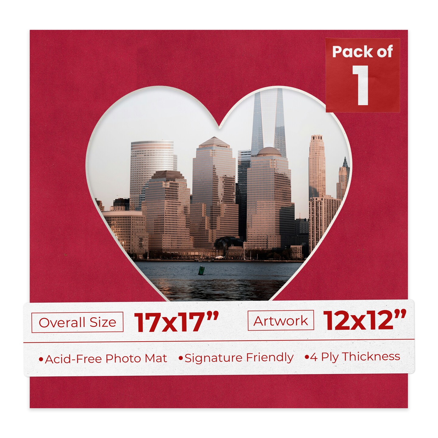 Red Suede Mat Board for 17x17 Frames - Heart Opening for 12x12 Photos