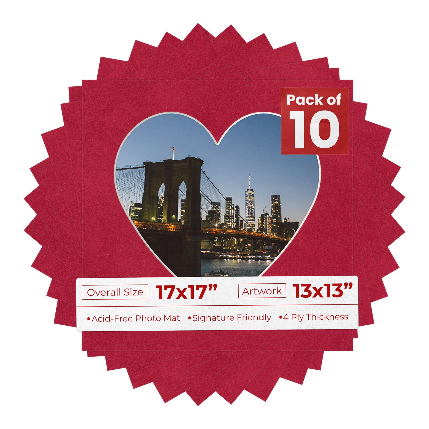 Red Suede Mat Board for 17x17 Frames - Heart Opening for 13x13 Photos