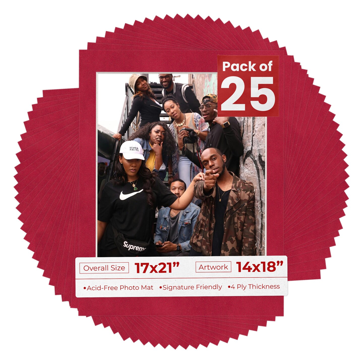 Red Suede Mat Board for 17x21 Frames - Fits 14x18 Photos