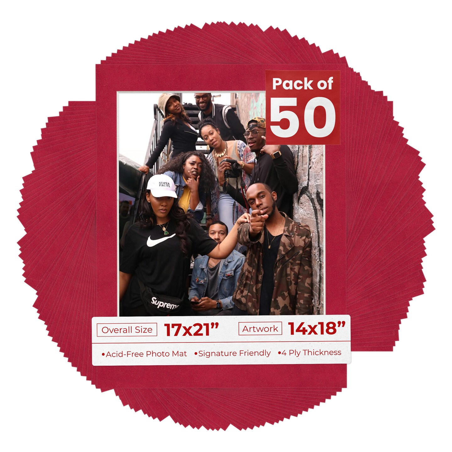 Red Suede Mat Board for 17x21 Frames - Fits 14x18 Photos
